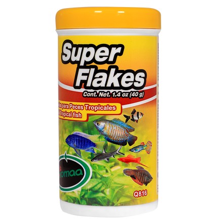 Super Flakes es un alimento equilibrado en copos, diseñado para cubrir las necesidades nutricionales de los peces tropicales de acuario. Super Flakes está fabricado con ingredientes de calidad, que en conjunto dan como resultado una fórmula sabrosa y saludable para sus peces.