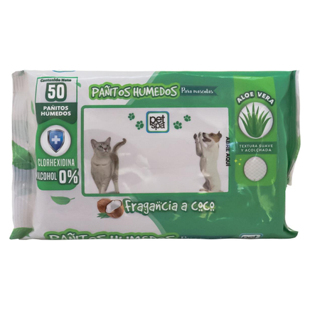 Limpieza rápida y efectiva para tu mascota. Estos pañitos húmedos Pet Spa con fragancia a coco son perfectos para mantener a tu perro o gato limpio y fresco en todo momento.