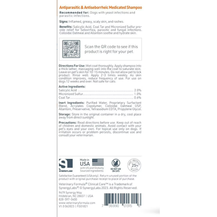 Para obtener mejores resultados, úselo con el champú antiséptico y antimicótico Clinical Care de Veterinary Formula.