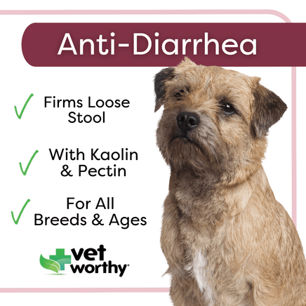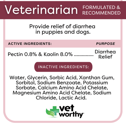 Reafirma las heces blandas en perros. El caolín y la pectina ayudan a aliviar la diarrea. Recomendado para aliviar el malestar estomacal. Esta fórmula veterinaria especial ayuda a aliviar la diarrea, los calambres estomacales y el malestar en cachorros o perros. Administrar por vía oral o añadir a la comida.