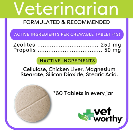 Este producto ayuda a mantener la salud dental y encías de los perros. Está diseñado para ayudar a controlar la placa, el sarro y el mal aliento cuando no se pueden cepillar los dientes. Sus ingredientes clave incluyen zeolitas, que ayudan a evitar que la placa se adhiera a los dientes, y propóleo, que ayuda a reducir el mal aliento. Este producto tiene un delicioso sabor a hígado que a los perros les encanta y está diseñado para ser ingerido. No sustituye la consulta dental regular con un veterinario.