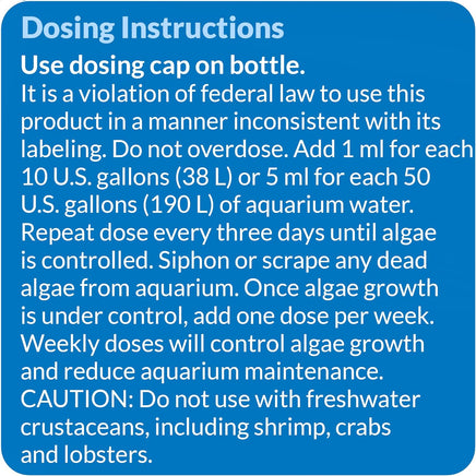 - Dosificar cada tres días hasta que las algas estén bajo control y luego dosificar semanalmente.