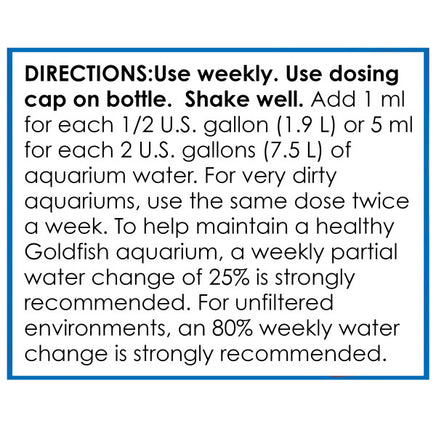 Agregue 1 ml por cada 1/2 galon o 5 ml por cada 2 galones de agua del acuario.