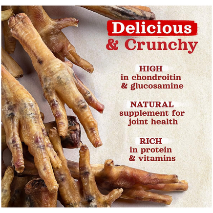 Premios para perros de patas de pollo sin uñas Natural Farm, patas de pollo 100 % de corral secas al aire, sin uñas, totalmente digeribles, alto contenido en proteínas, bajo en calorías.