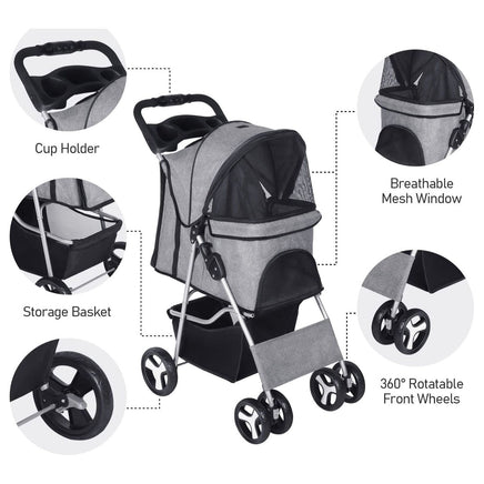 El cochecito para perros pequeños está equipado con un maravilloso portavasos para botellas de agua y con una canasta de almacenamiento adicional debajo del cochecito para perros para su teléfono, bolso, juguetes y golosinas. Es ideal para ir de compras, acampar y viajar con su querida mascota.