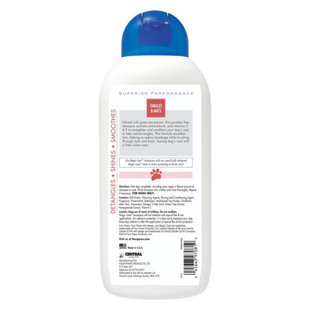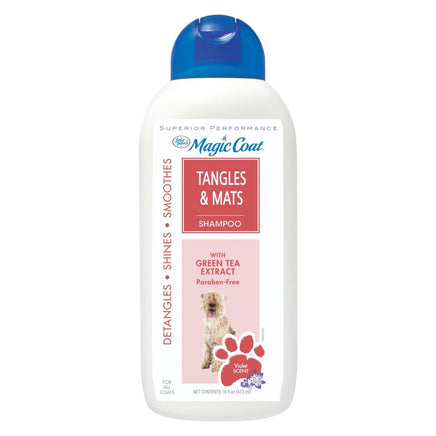 Reduce y elimina fácilmente los enredos y esteras de tu mejor amigo con la ayuda del champú Magic Coat Tangles & Mats. Este champú desenredante para perros contiene extracto de té verde, antioxidantes y vitaminas C y E para ayudar a fortalecer y acondicionar el pelaje mientras reduce los enredos. La fórmula también suaviza el cabello para evitar que se rompa mientras se cepilla las marañas y nudos. El resultado es un pelaje suave y brillante con un fresco aroma a voluta. ¡Sin parabenos ni colorantes, este champú se fabrica con orgullo en los EE. UU.!