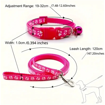 Set de Collar ajustable con Correa. Variedad de colores disponibles.
