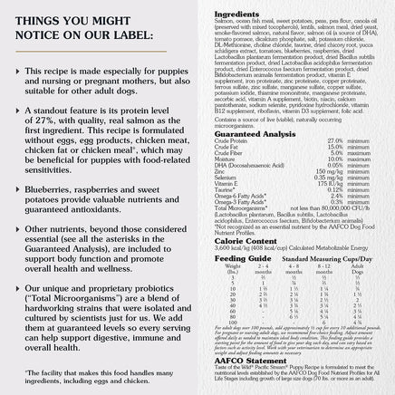 Taste of the Wild Pacific Stream Puppy con alimento seco para perros con Salmon con sabor a humo ;el pescado es  el ingrediente #1; alto en proteínas (27 %) para ayudar a mantener los huesos, las articulaciones y los Musculos fuertes  en cachorros y madres lactantes o embarazadas es rico en nutrientes y proporciona la energía para prosperar; vitaminas y minerales de Supercomidas; Ácidos grasos omega para una piel y un Pelo sanos Cada porción incluye altos niveles de PROBIÓTICOS PROPIETARIOS de la cepa K9 específicos de la especie, además de antioxidantes y prebióticos, para ayudar a apoyar una digestión saludable, el sistema inmunológico y la salud y el bienestar en general.